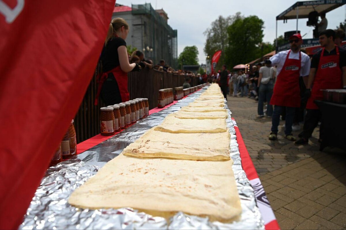 В Краснодаре приготовили шаурму длиной 21,11 метра 👀 Для ее приготовления использовали 20 видов соусов объемом 4 литра, 12 кг куриного филе, 14 кг свежих овощей, 2,5 кг корейской морковки и 80 листов лаваша! Всего получилось 500 порций. Ее приготовили в рамках проведения музыкально-гастрономического фестиваля «Маёвка 2025» на Пушкинской площади. Фестиваль стартовал вчера и продлится до 11 мая. Вот тут программа. Съели бы такую шаурму? 👇 ❤️ — да, всю и с удовольствием! 👍 — нет, лучше бы приготовили 20-метровый шашлык Подписаться | ПРО ЮГ