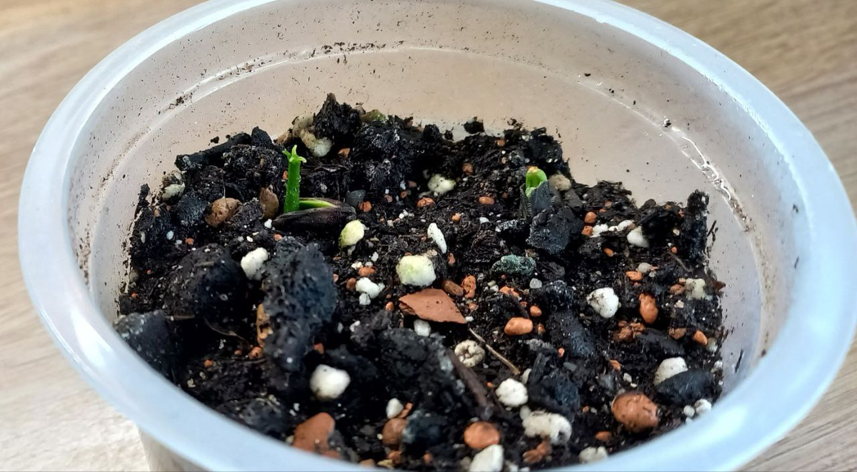 Месяц семена сидели в грунте, не подавая признаков жизни. Я даже выкапывала их, чтобы посмотреть. Из пяти семечек два пропали, а три выпустили по крепкому корешку. Прикопала обратно и продолжила ждать.