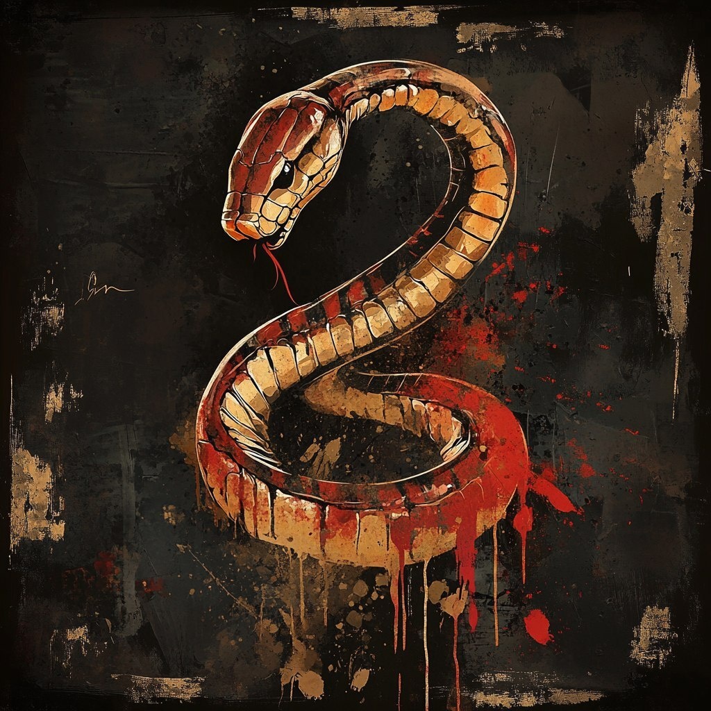 Создано на основе запроса: create a distressed cobra, abstract art on a black background