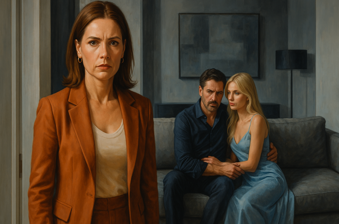 Елена застыла в дверях. Её не должно было быть дома — совещание отменили в последний момент. Теперь она смотрела на своего мужа и незнакомку, сидящих на их диване — том самом, что они выбирали вместе два года назад.