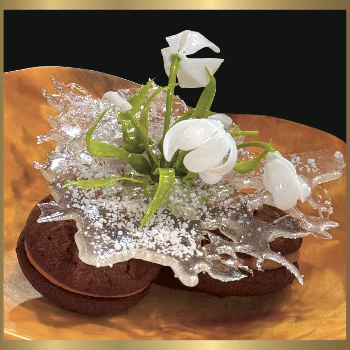 Аллюлоза – 100 г 👩🍳СПОСОБ ПРИГОТОВЛЕНИЯ 🍪Печенье: 🍫Крем шоколадный на заварной основе: 🍊Конфи апельсиновое: Сборка десерта: Выложить на печенье небольшое количество крема, круговыми движениями формируя замкнутое кольцо. В центр отсадть ап