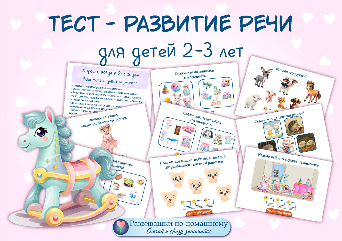 Часто мамы задумываются, что должен знать и уметь малыш на третьем году жизни. Моя коллекция тестов на всестороннее развитие малыша поможет в этом. Подробнее можете посмотреть в рубрике "Тесты по возрасту": Последний из этой коллекции - это тест на развитие речи. Задания продуманы так, чтобы можно было и дома, и на прогулке с малышом тренироваться, задавать подобные вопросы, используя домашние игрушки и то, что есть под рукой.