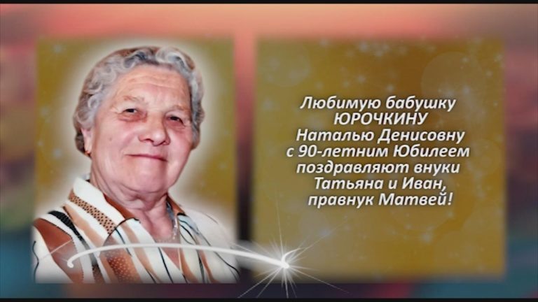 Любимую бабушку ЮРОЧКИНУ Наталью Денисовну с 90-летним Юбилеем поздравляют внуки Татьяна и Иван, правнук Матвей! Дорогая, любимая наша бабулечка, нам очень жаль, что между нами большое расстояние, как мне сейчас хотелось бы быть рядом с тобой, но не смотря на это, от всего сердца поздравляем тебя с большим юбилеем. С 90-летним юбилеем, бабулечка!