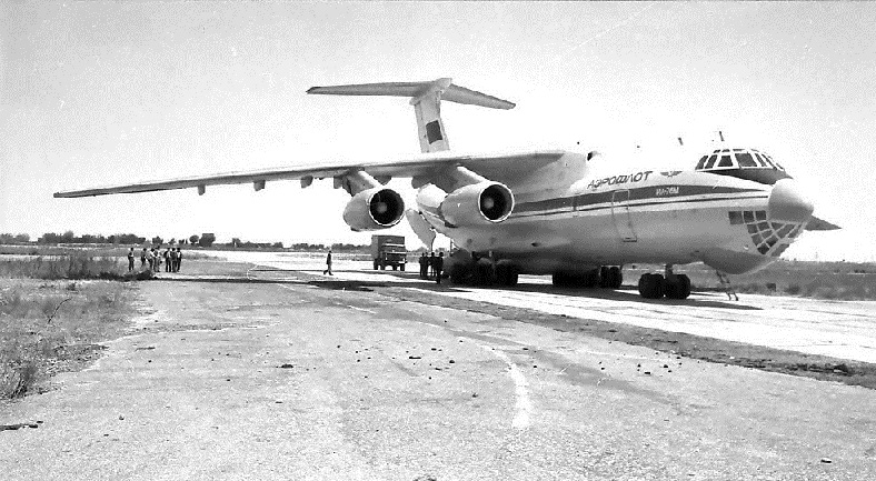 Ил-76 сел на разбитую полосу. По инструкции груз должны были принять «техники», но вокруг не было ни души. Только ветер свистел в ржавых фермах ангаров.