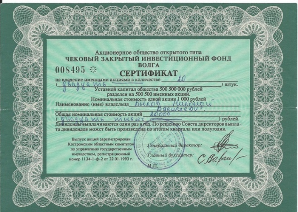23.11.1992 - Акционерное общество открытого типа "Чековый закрытый инвестиционный фонд "Волга" (АООТ "ЧЗИФ "Волга").