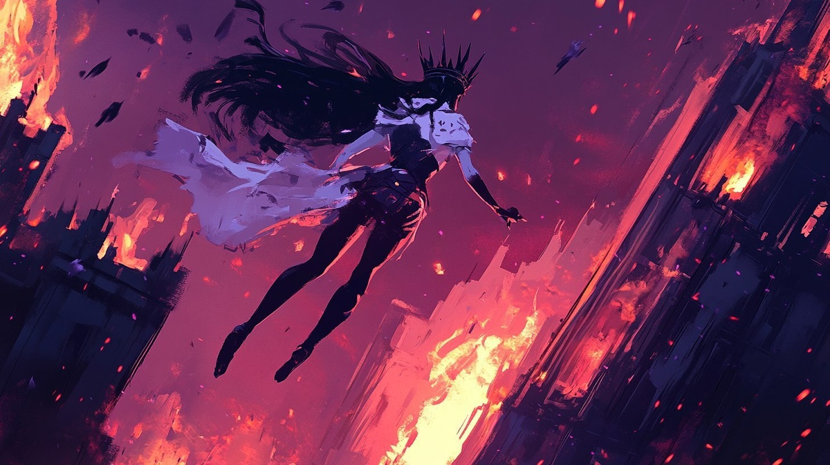 Создано на основе запроса: an dnd female character with black hair, white skin and wearing an black crown and an purple armor ; levitate above an medieval city on fire, she is using dark magical power, around her we can see some banshee screaming at us, very dynamic and epic pose, embers and snow effect, poetic, emotionnal, pay attention to the details. Dnd style, magic the gathering style, dark fantasy style, ink, ink style. --- Автоперевод: женский персонаж DND с черными волосами, белая кожа и черная корона и фиолетовая броня; Как тебе эта генерация? 🤔 https://dzen.ru/id/65c0c65c86e4f837c27b24d7 #ИИ #AI #нейросеть #midjourney #art