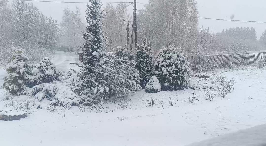 Всем привет 🤗 Весна в этом году нас совсем не радует... наверное проверяет нас на прочность)))) Второй день идёт снег.....он идёт ночь и утро.....днём начинает превращаться в кашу,но на клумбах лежит, потому что холодно.....и нам обещают минус 5))) Из-за мокрого снега у нас нет электричества ,слава Богу генератор нас выручает))))Без него даже и не знаю как мы были..... Девчонки мои в недоумении .....гуляли....ели траву и кусты....грелись на солнышке ....а теперь сидят снова в сарае с сеном))))Ветер сильный ,сдувает всё....на улице прям неприятно быть..... Птицы живут у нас под домом.....мы их подкармливаем как можем.....они тоже в шоке.... Цветы у нас в теплице с обогревателем....там им хорошо))) Генератор греет нас) и цветы)и даёт нам воду))))) Так что мы держимся ...ждём весну....вроде бы по прогнозам она рядом))))) А у вас как дела обстоят с погодой?