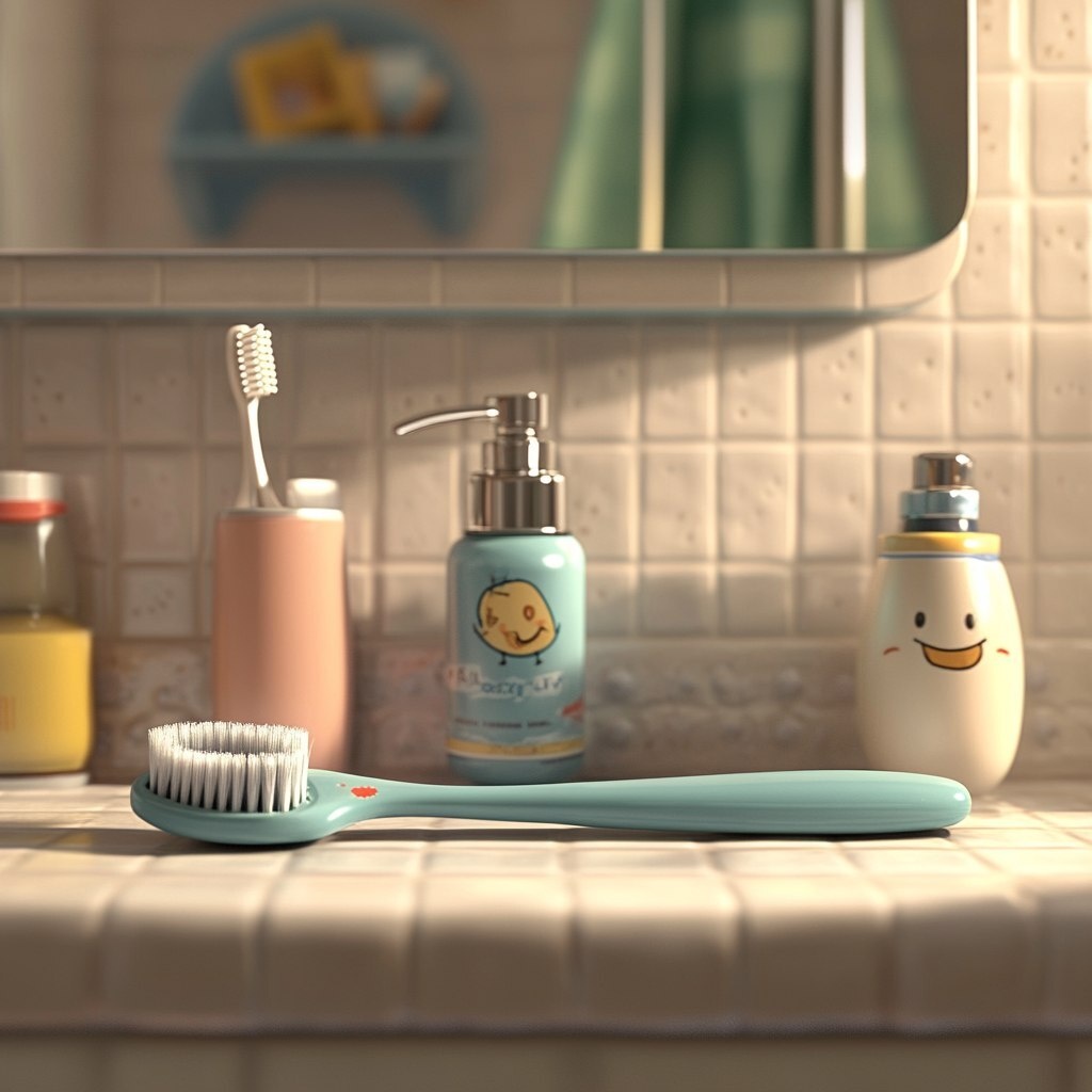 Создано на основе запроса: toothbrush on the bathroom counter, pixar style