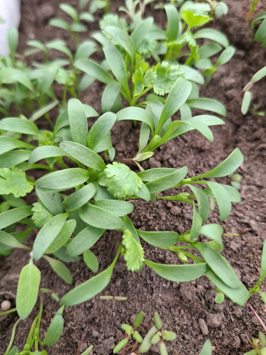 Приветствую читающих. Оказывается я тоже почувствовала выходные. Привыкла уже куда- то ходить, то на кружок, то сети плести , каждый день ухожу часа на 2-3. В праздники волонтерам объявили выходные дни до 5 мая и кружка тоже до пятого нет, хотя это по расписанию. Так неожиданно , целых пять дней никуда не надо! Неторопясь занимаюсь домашними делами. Погода такая, что посадками на улице еще совсем заниматься рано. Но в теплице уже можно кое- что посадить. Минусовая температура ночами сохраняется еще , пусть минус один, но минус, поэтому вынесла все растюшки в теплицу и устроила теплицу в теплице. Не могла пройти мимо уцененного проросшего лука, взяла десять луковиц, воткнула в теплице на зелень. На первом фото , мое разгильдяйство так выглядит. Прошлой весной посадила в теплице кинзу на раннюю зелень, один куст в огурцах потом затерялся, выбросить его как -то не получилось, причем по непонятным причинам. Он естественно вырос, зацвел и дал много семян. Осенью когда теплицу