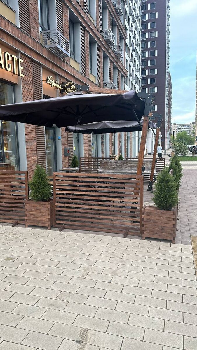 Летняя веранда — это место отдыха, уюта и встреч с близкими. Именно поэтому к её оформлению мы подошли с особым вниманием и заботой о каждой детали. Для ограждения мы выбрали прочные, эстетичные материалы, которые гармонично вписались в общий стиль пространства. Все элементы конструкции были тщательно обработаны антисептиком в несколько этапов: до сборки — для защиты изнутри, и после — для создания надёжного защитного слоя снаружи. На углы мы специально собрали г-образные кашпо для сохранения полезной площади. Чтобы гармонично завершить декор и закрыть свободное пространство, мы использовали листы фанеры с аккуратно вырезанными отверстиями под горшки с туями. В дальнейшем фанеру можно украсить декоративной щепой, добавив уюта и природной текстуры в общее оформление. Вся конструкция состоит из 8 ширм, 7 прямых кашпо и 2-х г-образных кашпо. Все изделия связываются саморезами для связки конструкции. Если вам тоже надо красиво и стильно оградить территорию, обращайтесь к нам в компанию. О