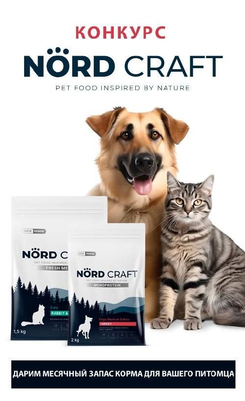 ⚡Внимание⚡ «Конкурс: Получи месячный запас корма БЕСПЛАТНО» Условия конкурса: Конкурс со 2 мая по 15 мая 16 мая объявление результатов Условия розыгрыша: - Станьте нашим подписчиком https://vk.com/nord_craft_korm - Поставьте лайк записи про конкурс - Прикрепить фото своего питомца в комментариях Определение победителей: По итогу конкурса программа konkurzilla.ru рандомно выберет 3 победителя, каждый получит в подарок месячный запас корма для своего питомца Доставка ТК Победителем может стать только участник из РФ. Конкурсные страницы в розыгрыше не участвуют. На время розыгрыша ваш аккаунт должен быть открытым, чтобы мы смогли проверить репост записи. При невыполнении всех условий мы будем вынуждены выбрать нового победителя. Желаем удачи!