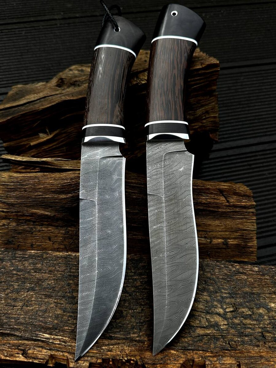 Большой рабочий нож из дамасской стали в 950 слоев.