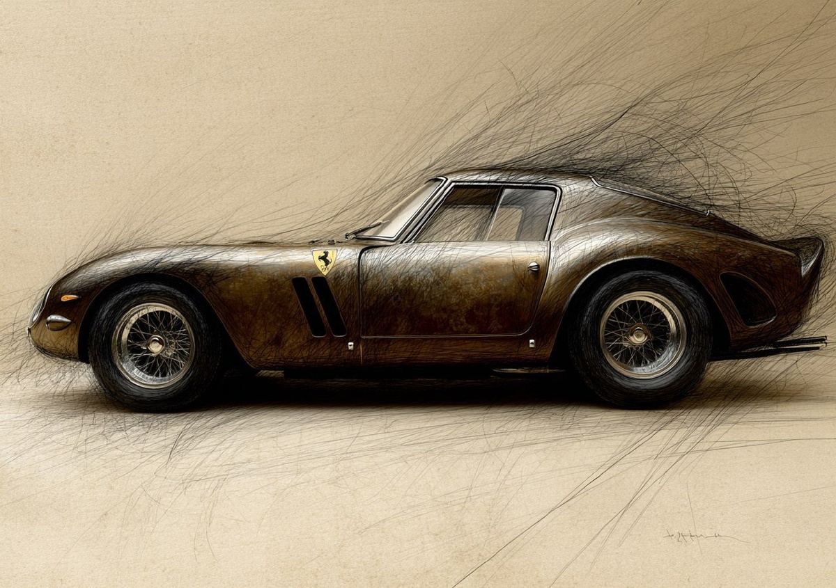 Создано на основе запроса: minimalist Ferrari 250 gto art sketch classic side profile, clean lines and subtle shading