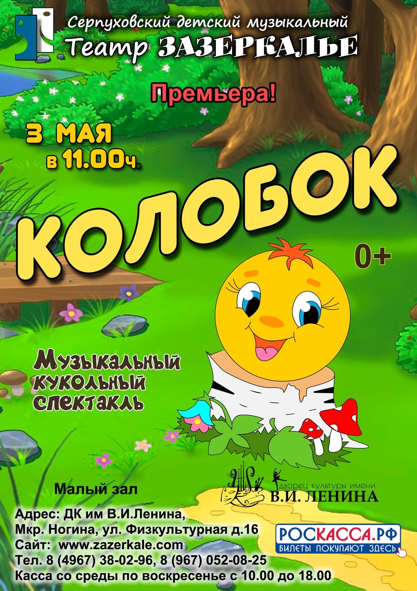 ✨ Музыкальный кукольный спектакль «Колобок» 🎭Представляем вашему вниманию волшебный спектакль «Колобок», наполненный весельем, музыкой и добрыми уроками дружбы и взаимопомощи. Вас ждут любимые герои, незабываемые приключения и море позитива! 🚫 Возраст: 0+ 📆 03.05.2025 🕒 11:00 🏢 Серпуховский детский музыкальный театр "Зазеркалье" 📍 г. Серпухов, мкр-н Ногина, ул. Физкультурная, 16 в ДК им. В. И. Ленина 💰 Цена от: 500 до 600 ₽ 🎫 Купить билет: https://zazerkale.com/ ✅ Мероприятия Серпухов https://dzen.ru/id/66f01c6eb4c6fe60c9ca1608 http://vk.com/serpukhov_events http://dzen.ru/serpukhov_events