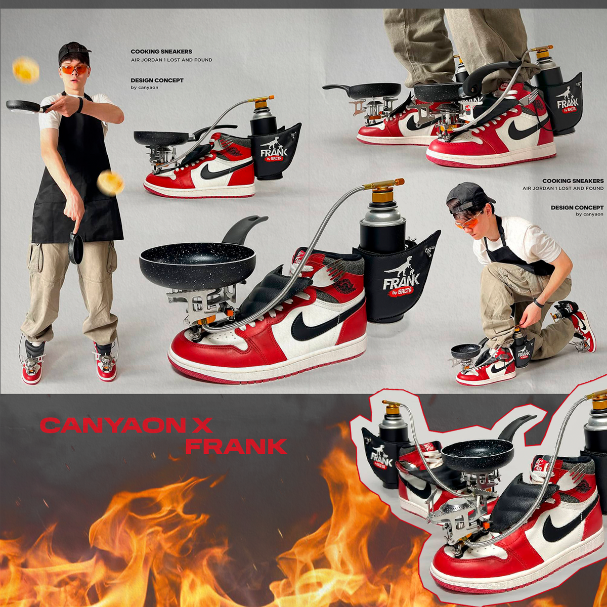 Зачем нам стоять за бургерами в очереди, если можно пожарить их самостоятельно на кроссовках? Саня Canyaon тот еще креативщик: сделал пару для FRANK, на которой реально можно пожарить мясо. Вот, представьте, что вам резко пюрешки захотелось с котлетой. Хлоп, и все готово. Больше интересного на нашем сайте POIZON