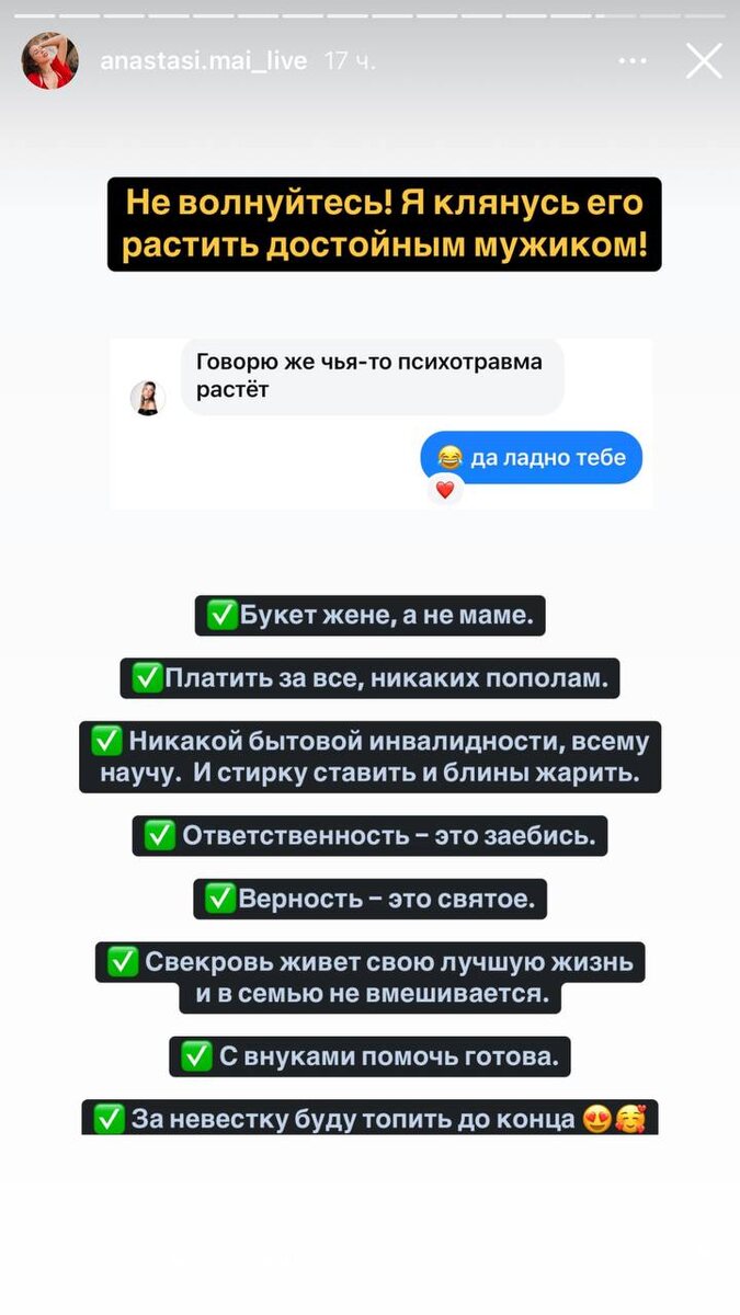 Настя Май планирует воспитать своего сына как настоящего мужчину / anastasi.mai_live
