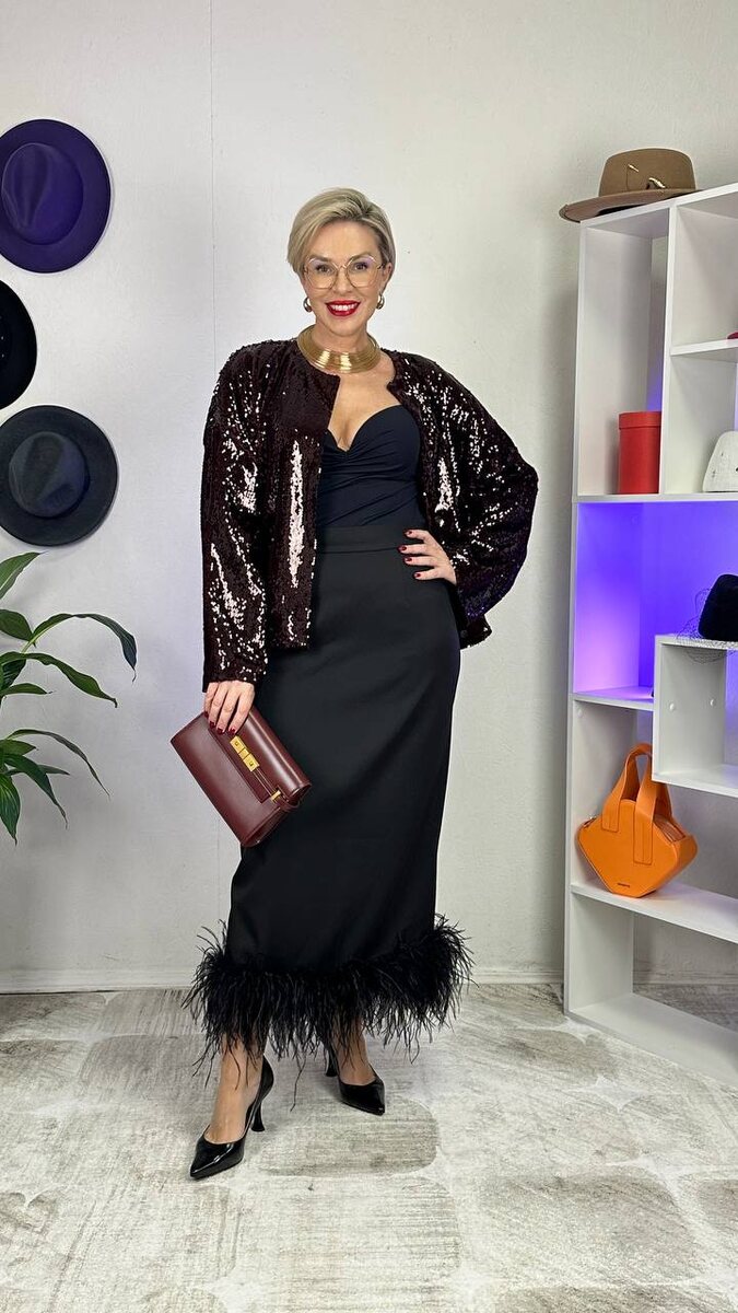 Этот комплект я вам уже показывала, но так как выбрала в качестве заглавного фото образ с данной юбкой, то решила показать его еще раз. Не все любят перья (а некоторые все еще ассоциируют их с Киркоровым и находятся в полной уверенности, что это антитренд), но лично я нахожу их очень эффектными! И, бесспорно, они в моде.