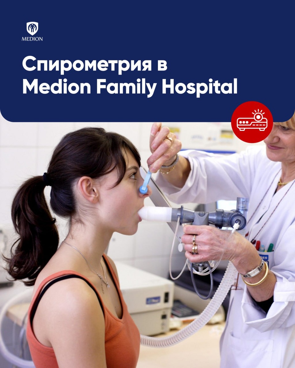 Теперь в Medion Family Hospital доступна спирометрия — современный и безопасный метод исследования функции лёгких! Что это? Спирометрия — это обследование работы внешнего дыхания с помощью специального прибора Оно позволяет оценить объём лёгких, скорость вдоха и выдоха, а также выявить скрытые проблемы дыхательной системы. Почему это важно? Помогает диагностировать болезни лёгких на ранней стадии Позволяет контролировать хронические заболевания Подходит для оценки физической формы и рисков перед операциями Без боли и риска Процедура абсолютно безболезненна, занимает до 30 минут и проводится амбулаторно 📌 Показания: Длительный кашель, одышка Хронические болезни лёгких Курение, аллергии Подготовка к операциям и оценка физического состояния 🚫 Противопоказания минимальны: острый туберкулёз, тяжёлое состояние, недавние операции 📅 Как подготовиться: Не курить 3 часа до теста Не есть 2 часа Не употреблять алкоголь и кофе накануне Избегать физических нагрузок Не упустит