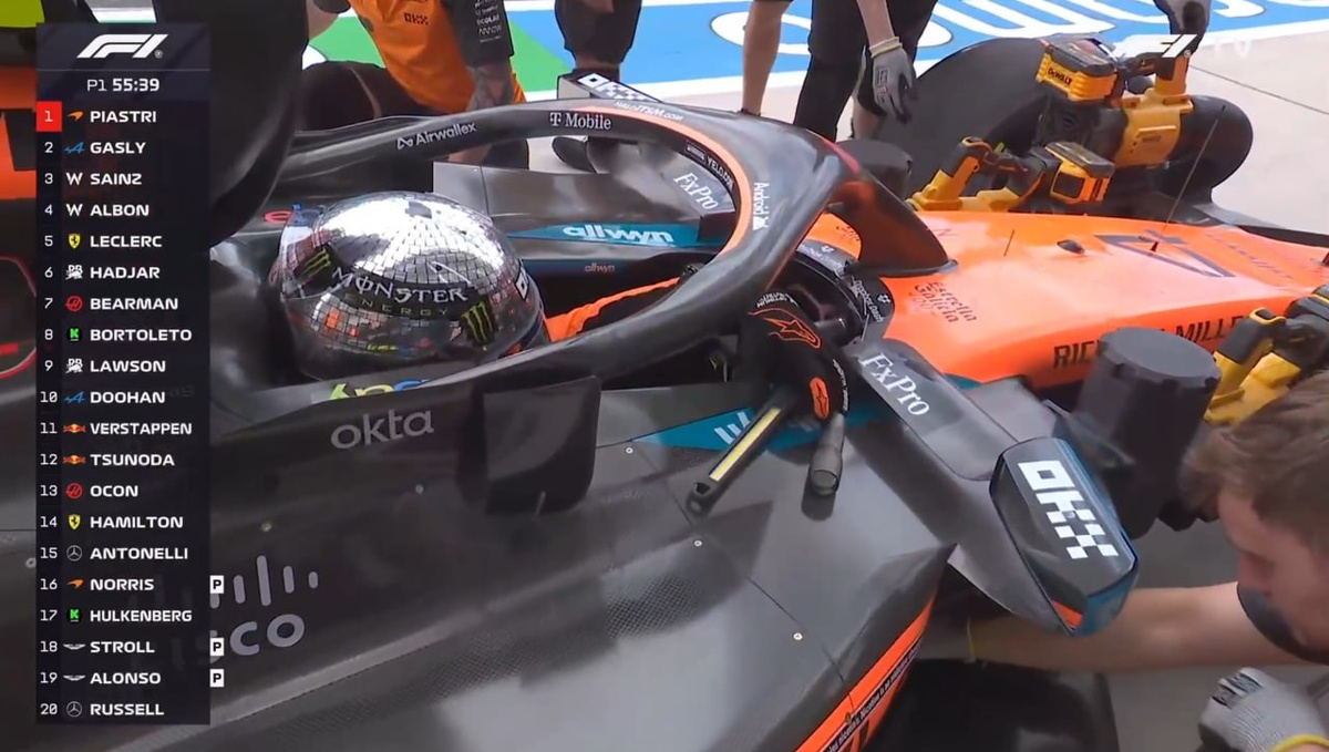 Норриса выпустили на круг с инструментами и фонариком, пришлось заехать в боксы, чтобы вернуть