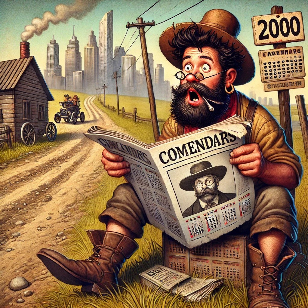 Календари к 2000 году Жил в глухой деревне мужик. Деревня была такая, что даже навигатор отказывался её искать. Летом туда можно было доехать, если повезёт, а зимой — если очень повезёт. Мужик, в общем-то, был обычный: пил водку, читал объявления в старых газетах и мечтал о богатстве. В один прекрасный день деньги кончились, водка тоже, а мечты о богатстве остались. Пришлось взять газету и почитать её на трезвую голову. И вот попалось ему объявление: «Требуются календари к 2000 году. Оплата высокая.» Мужик почесал затылок. Был 2024 год. Но если кто-то просит календари к 2000-му, значит, они кому-то нужны! — А почему бы и нет? — подумал мужик. Он собрал котомку и отправился в город. В городе типографии, конечно, сначала посмеялись: — Мужик, ты откуда? Какой 2000-й год? Но он был настойчив. Уговорил одну мастерскую напечатать пару пробных экземпляров. И тут начались чудеса! Оказалось, что календари к 2000 году нужны ретро-любителям, коллекционерам, дизайнерам, которые оформляю