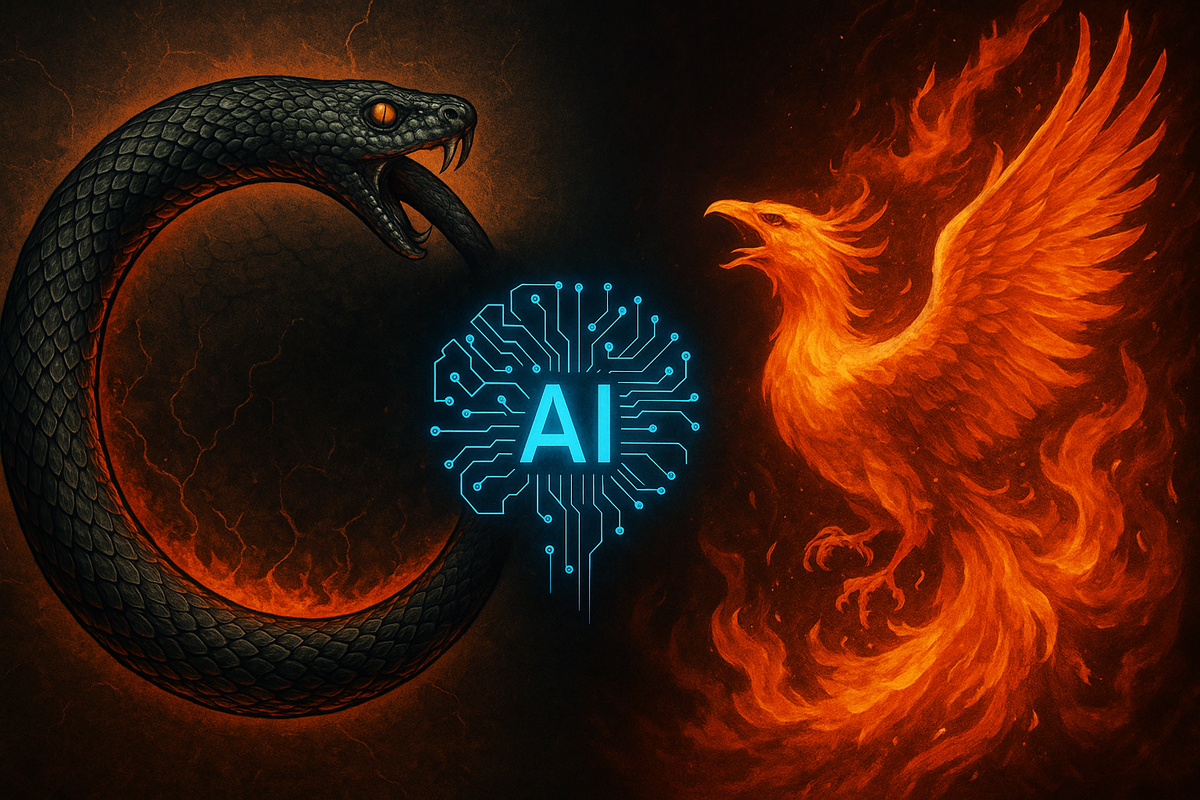 🎭 Мы имеем Богатство, и теперь кормим его мусором. ИИ сегодня — это не чудо, уродливый мета-подросток, воспитанный на TikTok'ах, рерайтах и бесконечной цепочке цитаты, ссылающихся на себя. Он больше не учится у людей. Он жрёт собственный хвост. Это и есть эффект Уробороса — когда интеллект начинает питаться самим собой, теряя связь с живым, первородным человеческим опытом. 📉 Что происходит дальше? Правильно. В этом же вторичном отношении.