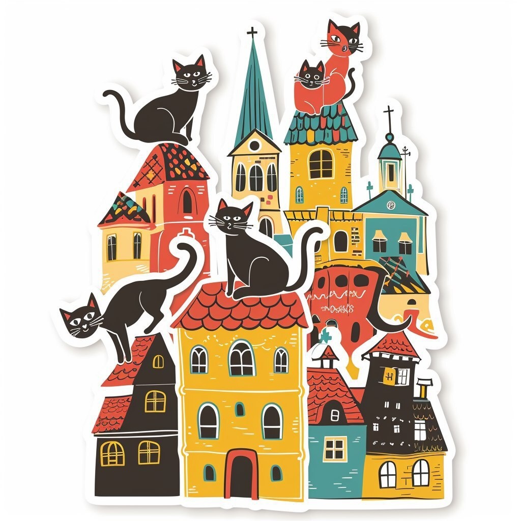 Создано на основе запроса: A5 sticker sheet on a white background, colorful small stickers with visible cut lines between them, featuring funny cartoon cats climbing and sitting on the roof of St. Stephen’s Cathedral (Stephansdom) in Vienna the cathedral must be recognizable with its patterned tiled roof and gothic tower cats in playful and silly poses cute vector illustration style, flat colors, white sticker outlines, kid-friendly --- Автоперевод: А5 наклеек на белом фоне, красочные маленькие наклейки с видимыми линиями между ними, в которых изображены смешные мультфильмы, поднимающиеся и сидя на крыше собора Святого Стефана (Стефандодому) в Вене, собор должен быть узнаваемыми своими узорчатыми плиточными крышами и готическими башнями в игривых и глупых поза Хорошо вышло? 🤔 https://dzen.ru/id/65c0c65c86e4f837c27b24d7 #ИИ #AI #нейросеть #midjourney #art