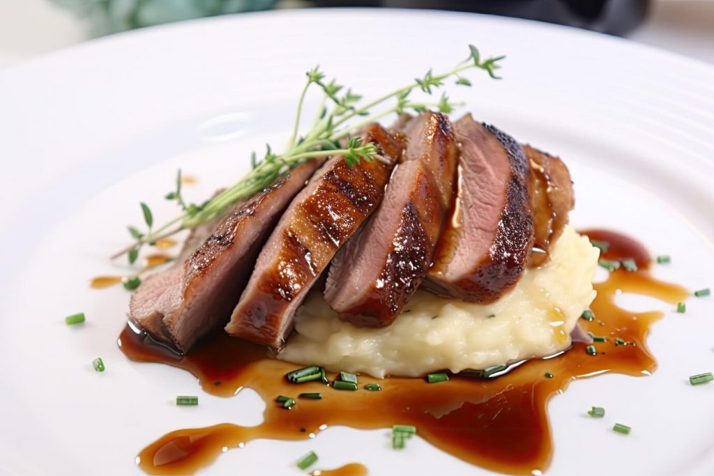 Утиная грудка — это деликатес, который можно приготовить дома, соблюдая несколько важных правил. Главное — получить хрустящую золотистую кожу и сочное мясо с розовой серединкой. Нарежьте грудку ломтиками, выложите на теплую тарелку. Отлично сочетается с: 🔹 Не пережаривайте! Утка вкуснее с розовой серединкой.