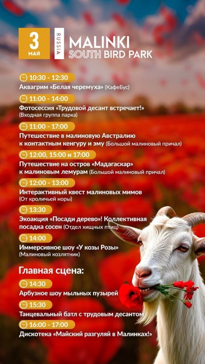 Первомайский разгуляй в Малинках! Иммерсивное шоу «У козы Розы»🌹