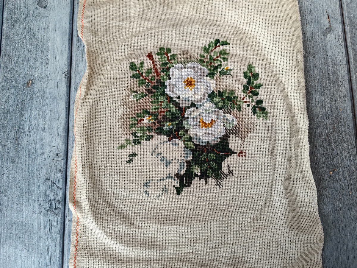 Вот и настало время немного рассказать о моих вышивальных новостях. В первую очередь, конечно, мои продвижения. Я продолжаю вышивать начатый 9 апреля набор от фирмы "Риолис" под названием "Белый шиповник" Об этом я уже говорила в своей предыдущей вышивальной статье На данный момент у меня уже вышито довольно много Практически осталось вышить только низ работы. Вышивается набор очень легко, буквально отдыхаешь за работой. Работу я сфотографировала, сняв с пялец, отглаживать не стала, никогда не отглаживаю недошитую работу, так что прошу не судить строго за мятую вышивку. Ну и самый главный старт этого месяца - небольшая работа, вышивка на пластиковой канве по авторской схеме Юлии Тарасовой. Схему я приобрела в группе в ВК под названием " Творческая мастерская Берегиня". Очень уже я хочу успеть вышить эти шикарные маки с георгиевской ленточкой к 9 мая, поэтому, быстро подобрав нужный материал, уже приступила к вышивке. На маркетплейсе я заказала набор пластиковой канвы различных ц