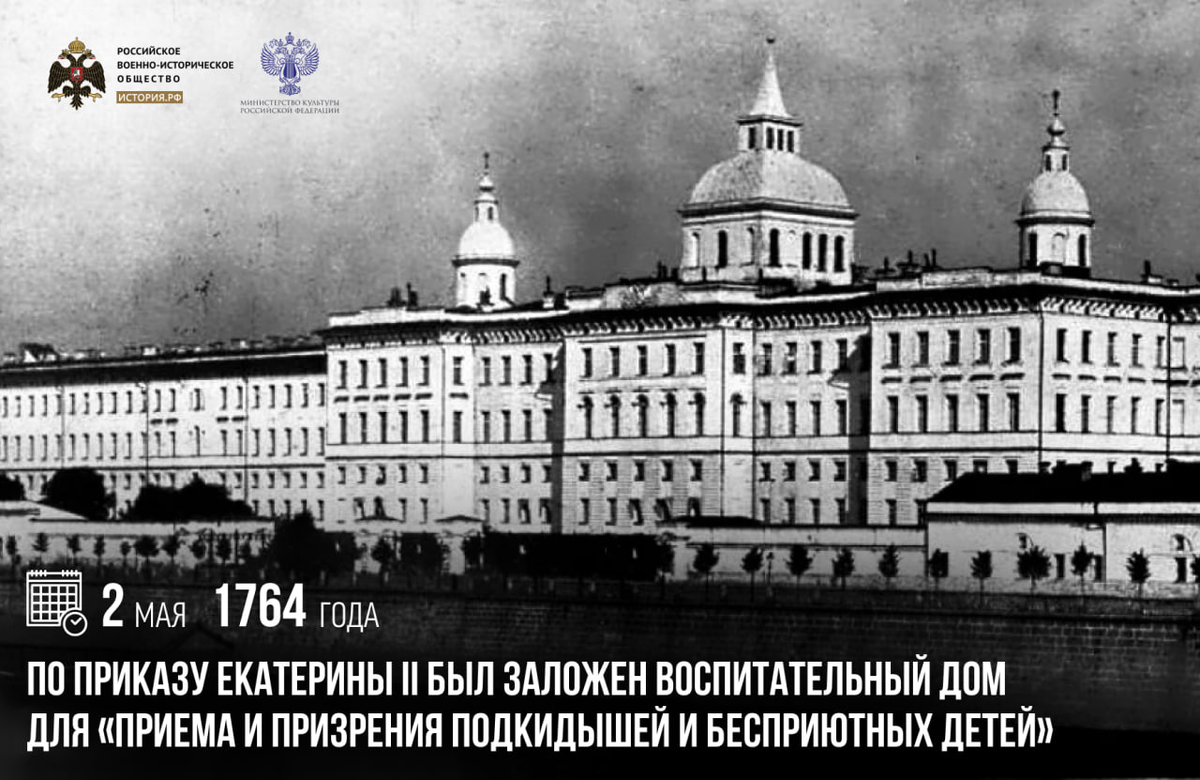 2 мая 1764 года по приказу Екатерины II был заложен Воспитательный дом для «приема и призрения подкидышей и бесприютных детей»