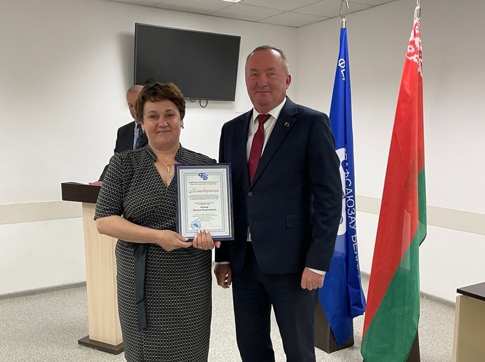Галине Комар из Лунинца вручена Благодарность Брестского областного объединения профсоюзов