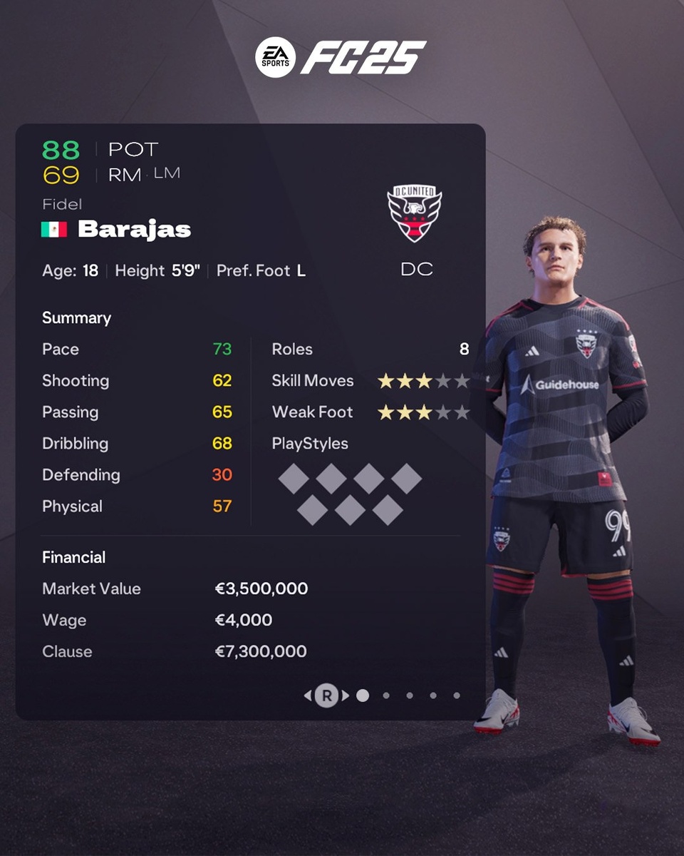 🇲🇽 Фидель Барахас из DC United был добавлен в режим карьеры FC25 и обладает выдающимся потенциалом 88! 🔝