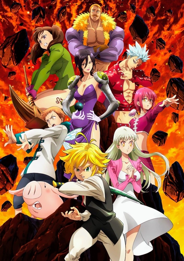 Сюжет. Действие «7 смертных грехов» происходит в вымышленном королевстве Лионес, где магия и мифические существа сосуществуют с людьми. Королевство находится под угрозой со стороны Священных Рыцарей, которые, казалось бы, защищают его, но на самом деле предали королеву и захватили власть. Принцесса Элизабет, одна из немногих оставшихся верных королевству, решает найти «Семь смертных грехов» — группу легендарных рыцарей, которые были обвинены в предательстве и распущены. Элизабет надеется, что они смогут помочь ей вернуть мир в королевство. В ходе своих поисков она находит Мелодаса — грех гнева и капитана «Семи смертных грехов». Он оказывается не только сильным воином, но и харизматичным лидером с таинственным прошлым. Темы: - Дружба и предательство: Персонажи сталкиваются с предательством как со стороны врагов, так и со стороны тех, кому они доверяли. - Искупление: Многие персонажи имеют темное прошлое и стремятся искупить свои грехи. - Сила любви: Любовные линии между персонажами иг