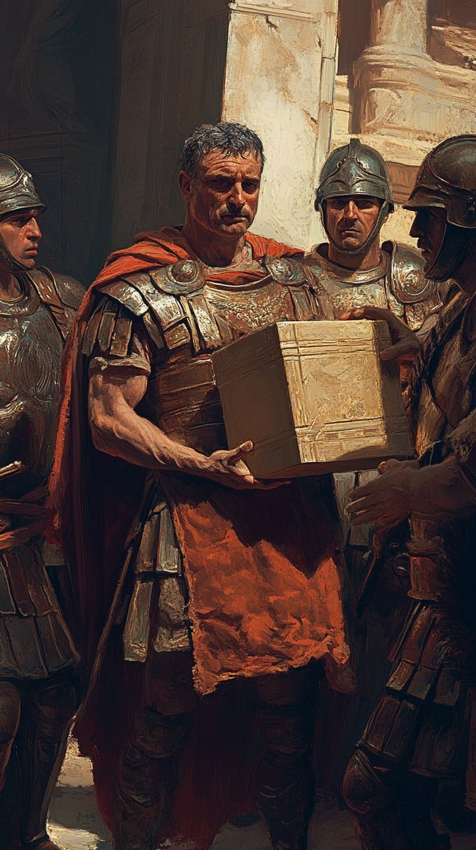 Создано на основе запроса: Hannibal stands still in front of the unopened box. His face is unreadable. Soldiers around him glance nervously. Ancient Roman mosaic style --- Автоперевод: Ганнибал стоит еще перед неоткрытой коробкой. Как тебе такая генерация? 🤔 https://dzen.ru/id/65c0c65c86e4f837c27b24d7 #ИИ #AI #нейросеть #midjourney #art