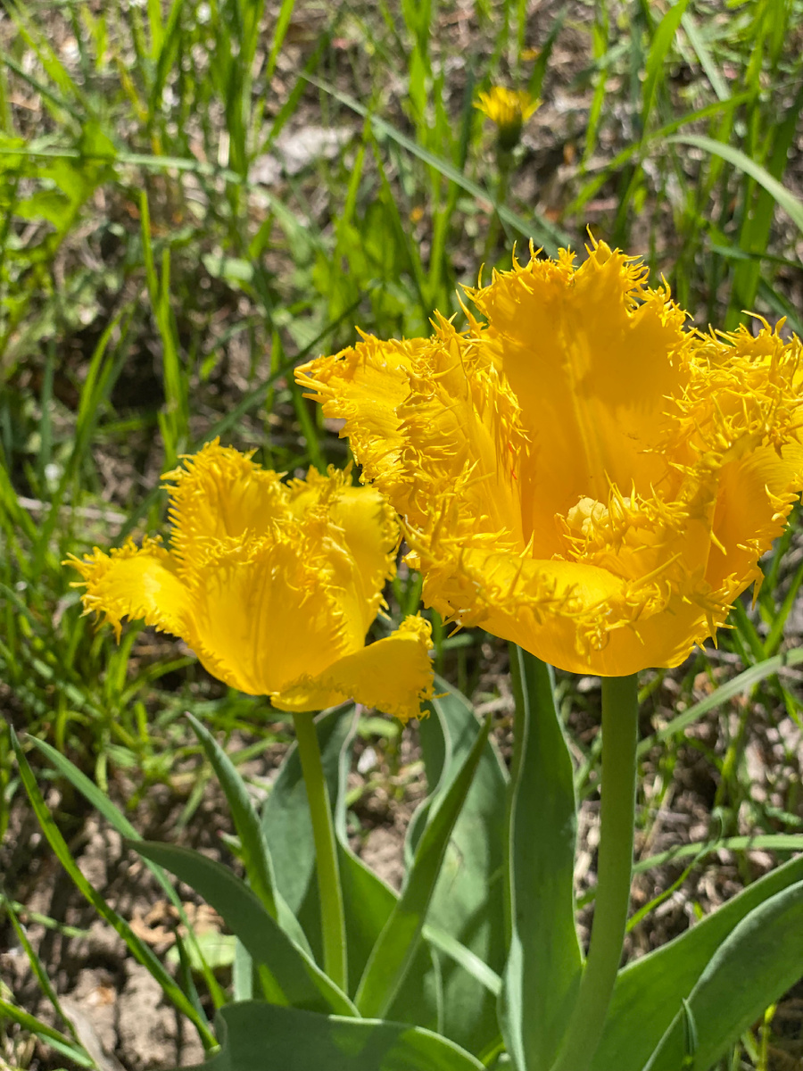 На фоне одуванчиков красиво смотрятся