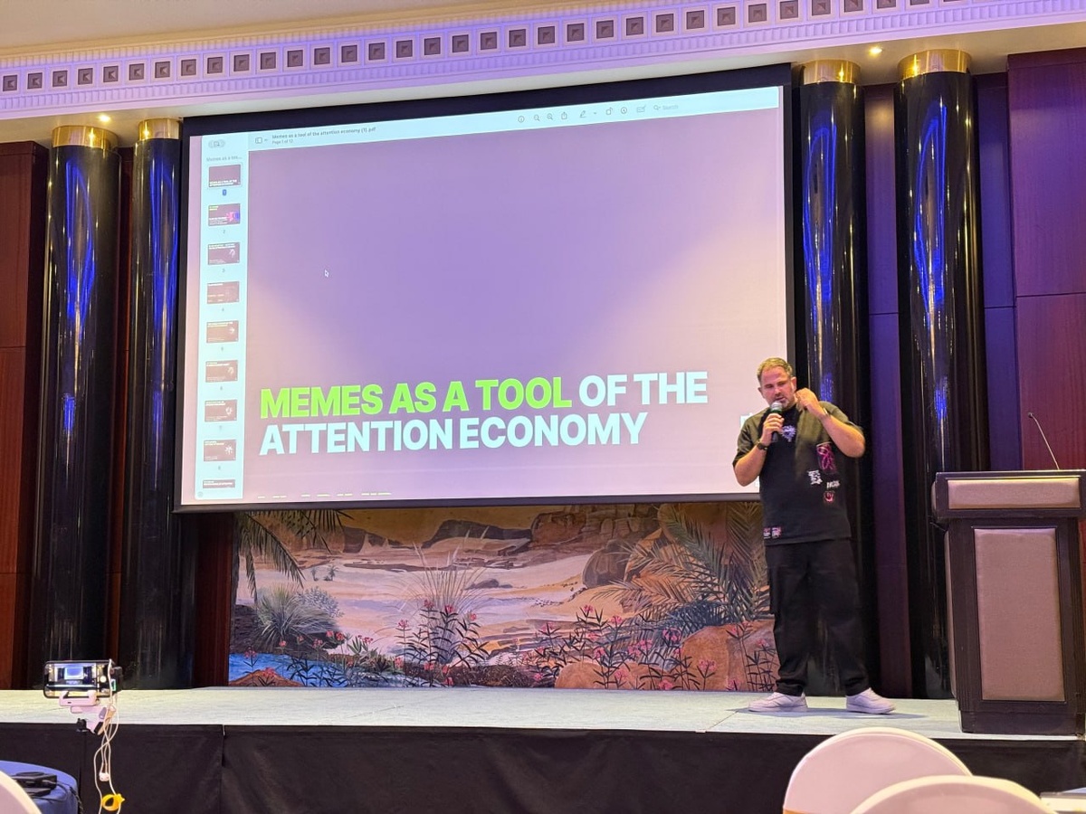 Memeland Summit прошёл успешно ➡️Выступал на мероприятии с нетипичной темой — рассказывал об экономике внимания, а не только о мемкоинах. Всегда интересно посмотреть на ситуацию с необычной стороны. ✉️ Канал | 🤑 Blum + Trading Bot | ✈️ Чат | 📹YouTube | 📷 Inst | 🌐 English | 😎 Вакансии