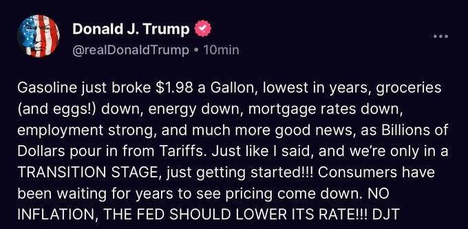 💬 Трамп вновь призывает ФРС снизить процентную ставку