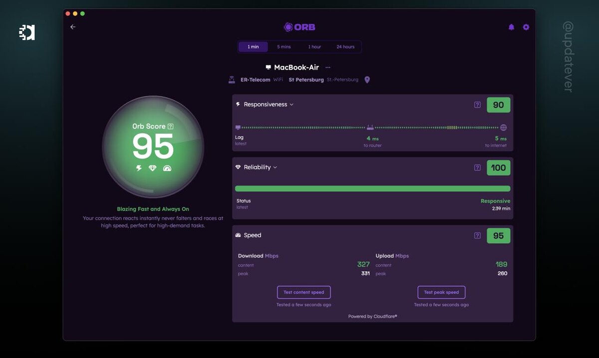 π¨ΠΠΎΠ²ΡΠΉ SpeedTest ΠΡΠ²ΡΠΈΠΉ Π³Π΅Π½Π΄ΠΈΡΠ΅ΠΊΡΠΎΡ Ookla ΠΎΠ±ΡΡΠ²ΠΈΠ» ΠΎ Π·Π°ΠΏΡΡΠΊΠ΅ Π½ΠΎΠ²ΠΎΠ³ΠΎ ΠΏΡΠΈΠ»ΠΎΠΆΠ΅Π½ΠΈΡ Orb Π΄Π»Ρ ΠΈΠ·ΠΌΠ΅ΡΠ΅Π½ΠΈΡ ΡΠΊΠΎΡΠΎΡΡΠΈ ΠΈΠ½ΡΠ΅ΡΠ½Π΅Ρ-ΠΏΠΎΠ΄ΠΊΠ»ΡΡΠ΅Π½ΠΈΡ. ΠΡΠΈΠ»ΠΎΠΆΠ΅Π½ΠΈΠ΅ Π²ΡΠ²Π΅Π΄Π΅Ρ ΡΠ΅ΠΉΡΠΈΠ½Π³ ΠΎΡ 1 Π΄ΠΎ 100 ΠΏΠΎ ΡΠ°Π·Π½ΡΠΌ ΠΏΠ°ΡΠ°ΠΌΠ΅ΡΡΠ°ΠΌ. ΠΠΎΡΡΡΠΏΠ½ΠΎ Π½Π° iOS, Android, Windows, macOS ΠΈ Linux. β‘οΈ ΠΠΎΠ΄ΠΏΠΈΡΠ°ΡΡΡΡ.
