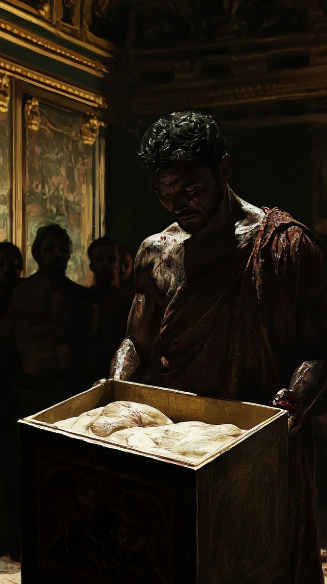 Создано на основе запроса: Hannibal looks silently into the open box. The contents are obscured in shadow. His face remains calm, while others watch in horror. Ancient Roman mosaic style --- Автоперевод: Ганнибал молча смотрит в открытую коробку. Интересно получилось? 🤔 https://dzen.ru/id/65c0c65c86e4f837c27b24d7 #ИИ #AI #нейросеть #midjourney #art