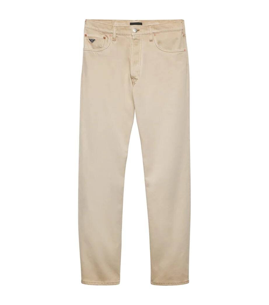 В летний период хочется добавить в свой гардероб побольше светлых оттенков. И джинсы тут не могут быть исключением. Поэтому сегодня я рассмотрю актуальные варианты на этот сезон. Prada представила последнюю разработку – джинсы прямого кроя «bull denim» – из чистого хлопкового денима, демонстрирующего точность линий, которыми славится итальянский дом. Классический силуэт дополнен эффектом винтажного старения и является отличным вариантом для прогулок по улицам большого города. Прямые джинсы от Valentino - пример минималистичного дизайна, на основе которого можно создавать повседневные мужские образы. Сшитые из высококачественного хлопка они с легкостью впишутся в любой образ и станут незаменимой вещью благодаря универсальности и классическому крою. Brunello Cucinelli славится превосходным мастерством в пошиве одежды, который применяется и при создании джинсовых изделий. Такие модели имеют прямую форму, слегка завышенную талию и сужающиеся к низу штанины, что делает их прекрасной ос