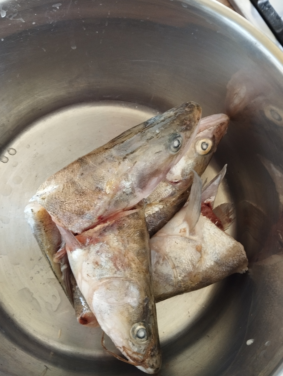 Об ухе по- нашенски я рассказал ранее и о ней больше не буду. Помимо купленного в "Магнит" в неё пошли также головы и обрезки местного судака, что остались от нашего прошлого пиршества. Уха получилась отличной, наваристой.