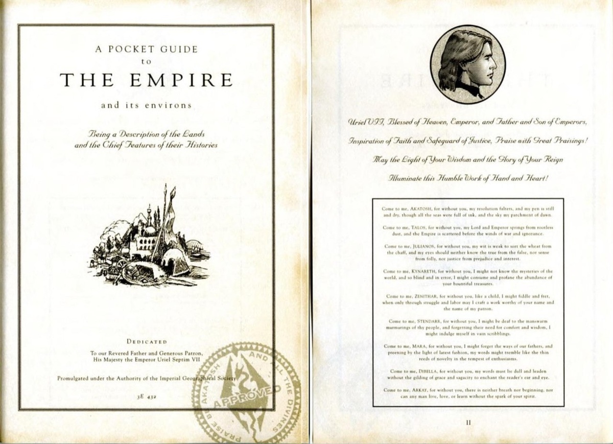 К ESO, TESA: Redguard и TES IV: Oblivion разработчиками выпускались путеводители по Тамриэлю, которые рассказывали о положении дел и культуре на всем континенте в эпоху Междуцарствия 2Э, захватнических войн Тайбера Септима и правления Уриэля VII. Если к The Elder Scrolls VI не будет путеводителя с историей регионов во времена 4 Эры, предлагаю устроить бунт в соцсетях 😁