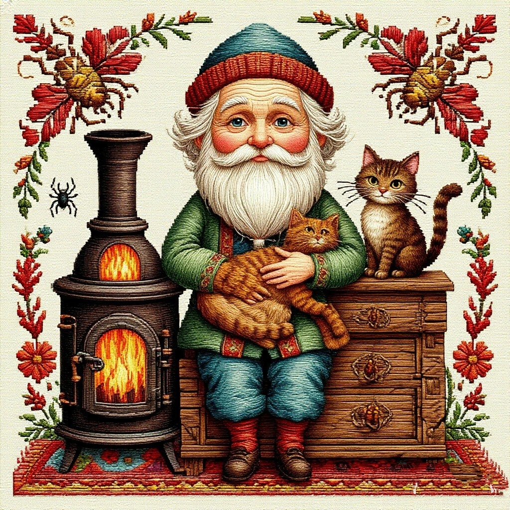 Домовой — персонаж русской и славянской мифологии, воплощающий дух дома. Он защищает дом от бед, приносит благополучие, предупреждает об опасности (например, стуком, шумом или через сны). Домовой часто изображается как маленький старичок с бородой, покрытый шерстью (серой или белой). Он может превращаться в животных (кота, собаку, змею) или принимать облик хозяина дома. Считается, что домовой — дух умершего родственника, который продолжает заботиться о семье. Если домового уважают (содержат дом в чистоте, оставляют угощения), он помогает семье. Если обижают — шумит, прячет вещи, душит по ночам. Обычно ему оставляют хлеб, молоко, кашу, табак, особенно возле печи или порога. Первые письменные упоминания Одно из ранних упоминаний — в проповедях Кирилла Туровского (XII век), где он осуждает поклонение «бесам», живущим в домах: «...иже молятся огневи под овином, и вилам, и Мокоши, и Симарглу, и Переплуту... и домовым бесом». XVI век: В «Домострое» (глава «Как жить в чистоте») упоминаетс