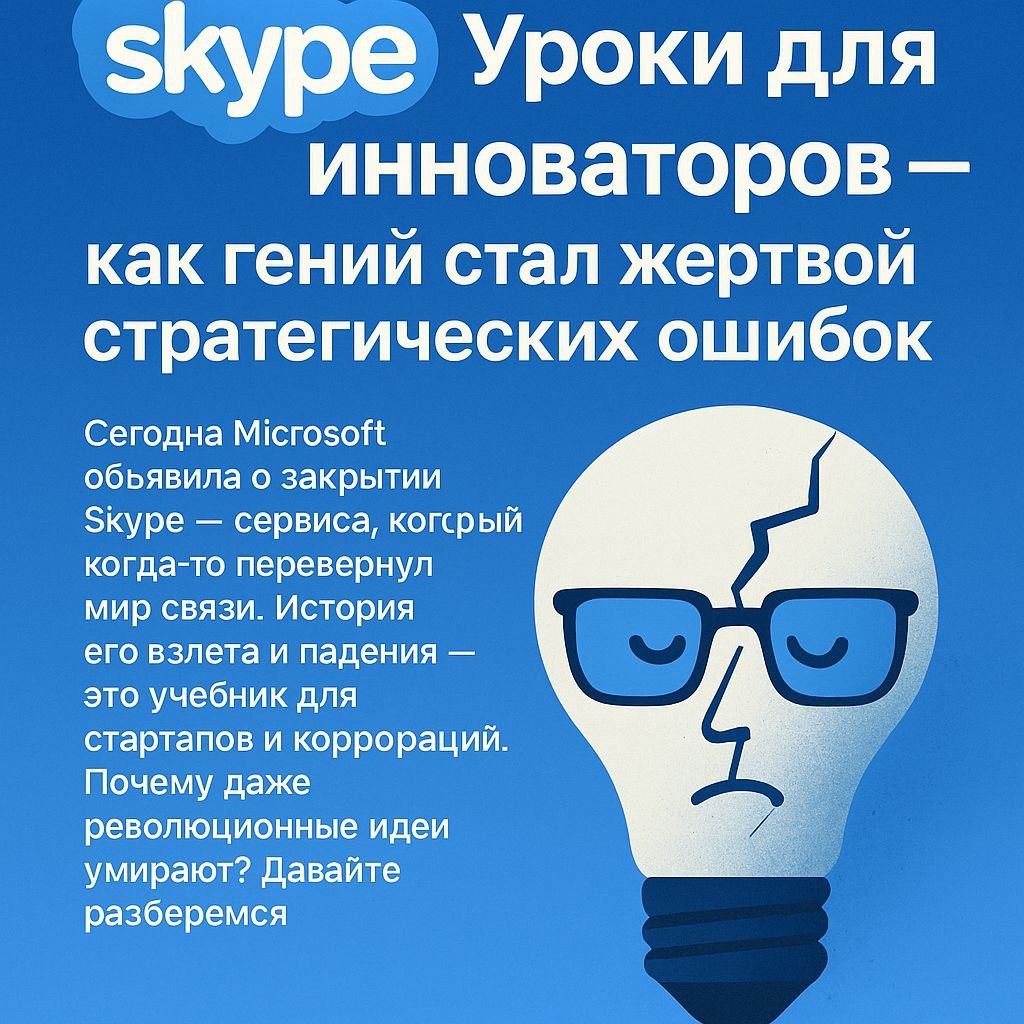 5 мая официально заканчивается поддержка Skype компанией Microsoft. ### Гениальный старт: как эстонские гики изменили мир Основатели Skype — команда эстонских программистов и два амбициозных бизнесмена — создали продукт, который стал синонимом видеозвонков. Их секреты: - Простота: установка за минуту, интерфейс для «чайников». - P2P-технология: дешевые звонки без серверов. - Бесплатный доступ: в эпоху дорогой международной связи это был взрыв. Результат? 663 млн пользователей к 2011 году и глагол «to Skype» в Оксфордском словаре. Почему Skype продали дважды — и почему это убило продукт 1. eBay: нелепая интеграция Купив Skype за $2.6 млрд, eBay пыталась встроить его в аукционы. Но зачем звонить продавцу, если есть чат? Монетизация провалилась, а команда основателей разбежалась. 2. Microsoft: стратегическая слепота За $8.5 млрд Skype стал «кирпичиком» в экосистеме Microsoft. Но вместо развития начался хаос: - Переход с P2P на облака ухудшил мобильный опыт. - Бесконечные редизайны и г