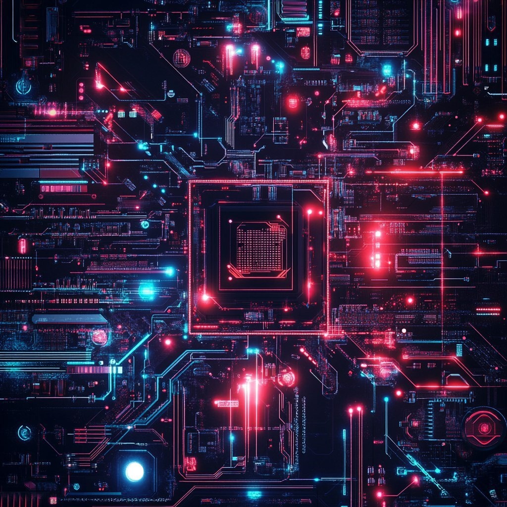 Создано на основе запроса: top-down view, not angled view, futuristic technology circuit board, cyberpunk screen