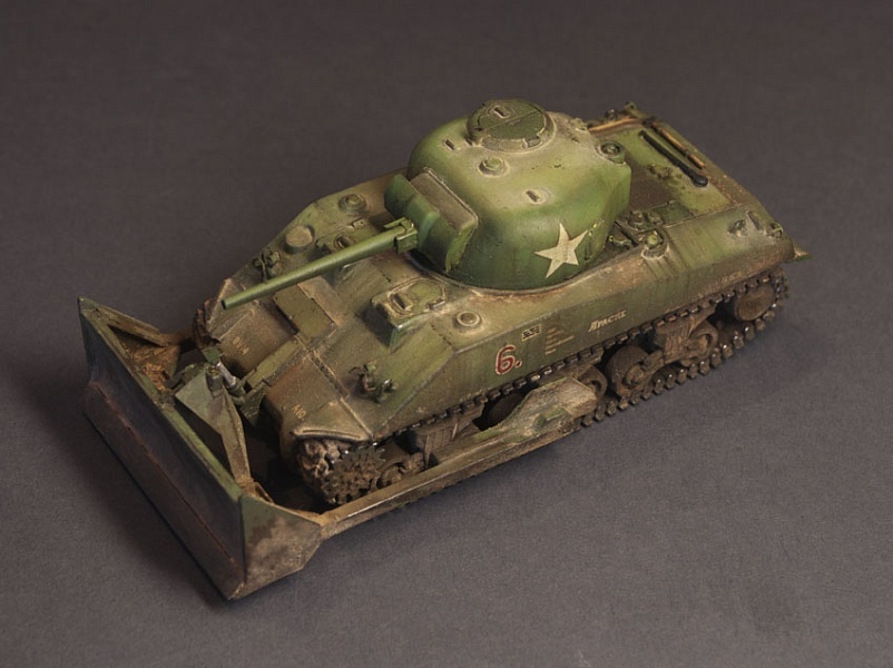 Sherman M4 Dozer — вариант «Шермана» с установленным в передней части бульдозерным ножом M1 или M2. Танк применялся инженерными частями, в том числе и для разминирования, наряду со специальными противоминными вариантами. ================================ Леонид Постный UM, 1:72 ================================ engraver Hobby Boss, 1:48 ================================ ================================