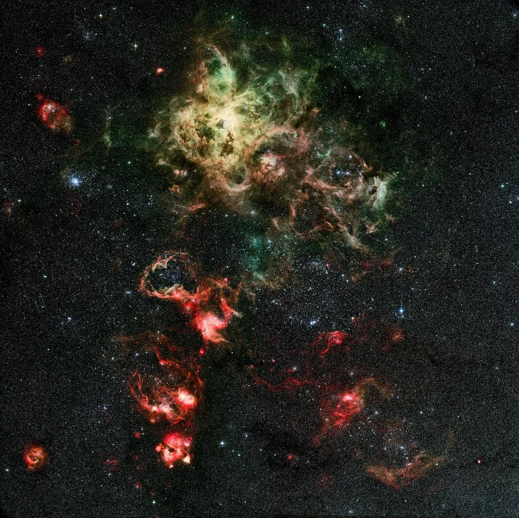Туманность Тарантул, 1000 световых лет в поперечнике в Большом Магеллановом Облаке