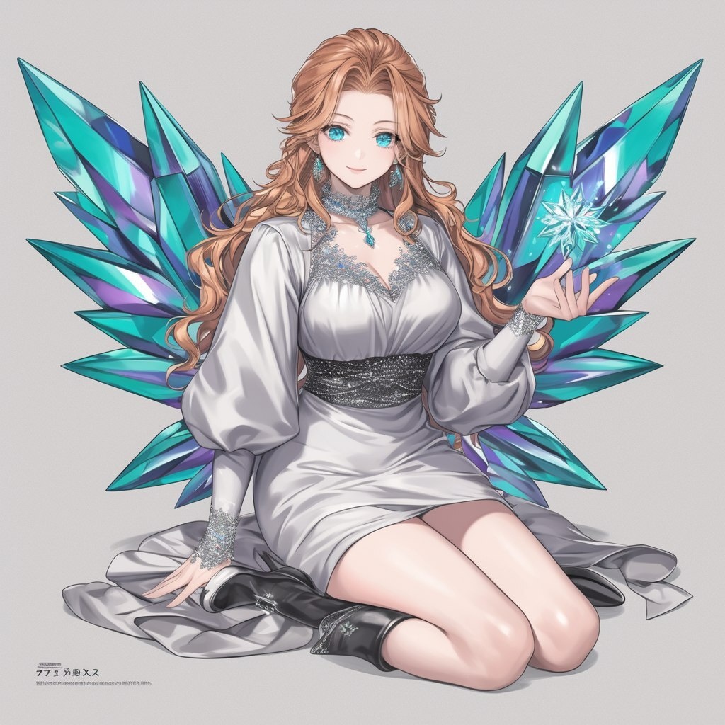 Создано на основе запроса: Full-length fairy girl with lemon hair and blue eyes, dressed in a beautiful dress with crystals and sparkles