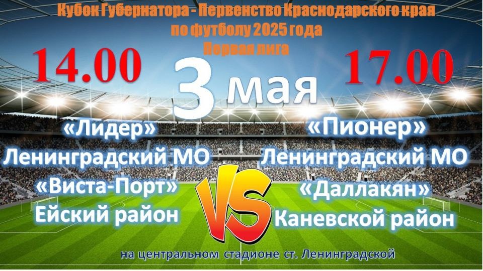 π£ΠΡΠΈΠ³Π»Π°ΡΠ°Π΅ΠΌ Π±ΠΎΠ»Π΅Π»ΡΡΠΈΠΊΠΎΠ² ΠΏΠΎΠ΄Π΄Π΅ΡΠΆΠ°ΡΡ ΠΊΠΎΠΌΠ°Π½Π΄Ρ! 14:00 β Β«ΠΠΈΠ΄Π΅ΡΒ» ΠΠ΅Π½ΠΈΠ½Π³ΡΠ°Π΄ΡΠΊΠΈΠΉ ΠΎΠΊΡΡΠ³ β Β«ΠΠΈΡΡΠ°-ΠΠΎΡΡΒ» ΠΠΉΡΠΊΠΈΠΉ ΡΠ°ΠΉΠΎΠ½ 17:00 β Β«ΠΠΈΠΎΠ½Π΅ΡΒ» ΠΠ΅Π½ΠΈΠ½Π³ΡΠ°Π΄ΡΠΊΠΈΠΉ ΠΎΠΊΡΡΠ³ β Β«ΠΠ°Π»Π»Π°ΠΊΡΠ½Β» ΠΠ°Π½Π΅Π²ΡΠΊΠΎΠΉ ΡΠ°ΠΉΠΎΠ½ β½οΈ Π¦Π΅Π½ΡΡΠ°Π»ΡΠ½ΡΠΉ ΡΡΠ°Π΄ΠΈΠΎΠ½ πΠΡΠ±ΠΎΠΊ ΠΡΠ±Π΅ΡΠ½Π°ΡΠΎΡΠ° - ΠΠ΅ΡΠ²Π΅Π½ΡΡΠ²ΠΎ ΠΡΠ°ΡΠ½ΠΎΠ΄Π°ΡΡΠΊΠΎΠ³ΠΎ ΠΊΡΠ°Ρ ΠΏΠΎ ΡΡΡΠ±ΠΎΠ»Ρ 2025 Π³ΠΎΠ΄Π° (ΠΠ΅ΡΠ²Π°Ρ Π»ΠΈΠ³Π°)