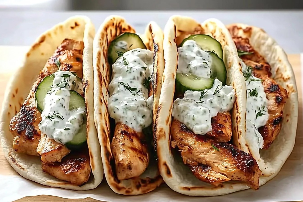 Создано на основе запроса: | Title: Greek Chicken Gyros with Cucumber Tzatziki | STYLE: Close-up Shot right view | EMOTION: realistic as